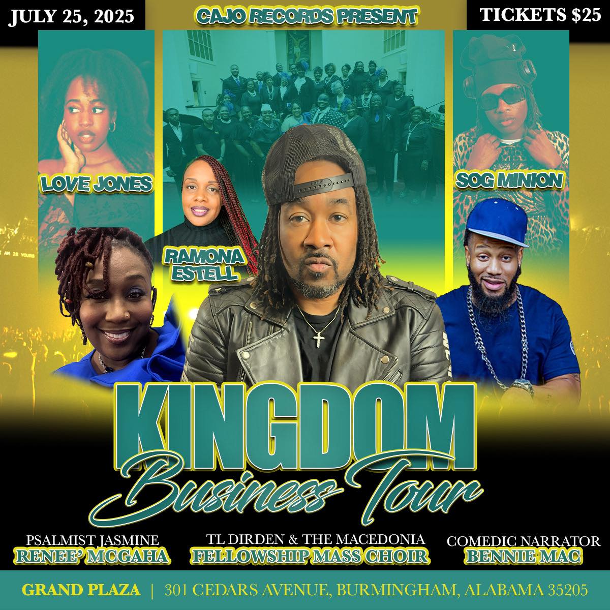 The Kingdom Business Tour is making a powerful stop in Birmingham on July 25, 2025. Presented by CAJO Records, the highly anticipated concert event will take place at the Grand Plaza, located at 301 Cedars Avenue.